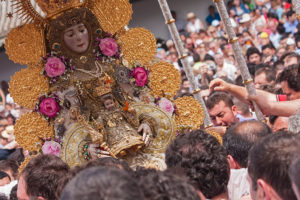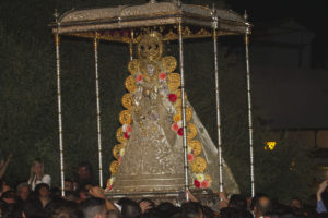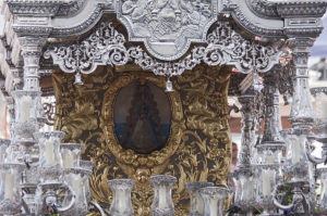 La imagen, arropada en todo momento por cientos de hermandades y fieles se muestra en todo su esplendor en la madrugada del Lunes con el salto de la Reja